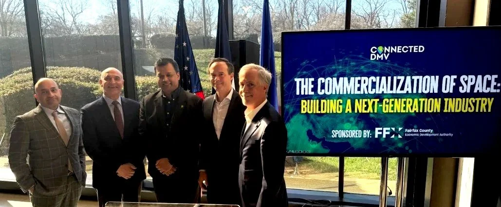 From Left to Right: NASA Chief Technologist A.C. Charania; Fairfax County EDA President and CEO Victor Hoskins; Connected DMV President and CEO George Thomas; Arkenstone Founder Preston Dunlap; and Connected DMV Chair Stu Solomon.